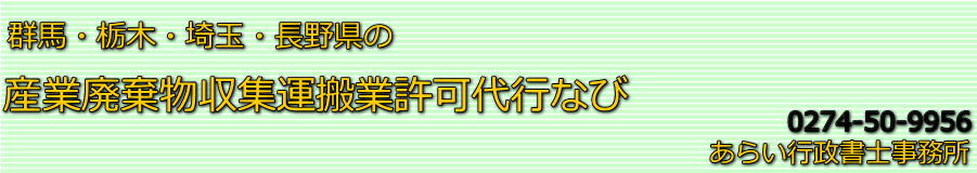 群馬県、栃木県、埼玉県、長野県で産業廃棄物収集運搬業許可取得をお考えの皆様、当事務所では群馬県を中心に近県の許可取得申請の代行を行っております。建設業を行っている方、運送業を行っている方、解体業を行っている方、又はこれから事業を展開しようといている方等、許可取得申請代行によりスムーズに事業開始ができるようサポート致します。